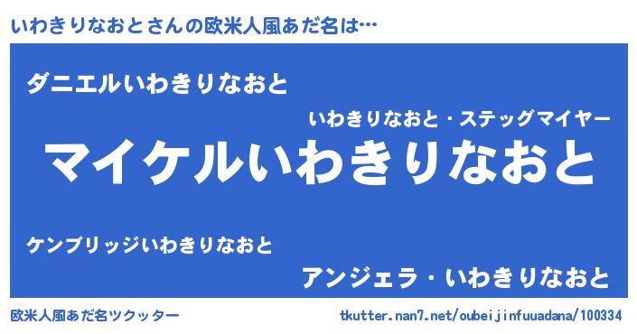 | 女子向けラノベタイトル風あだ名 | 『いわきりなおと姫と円卓の騎士』 |