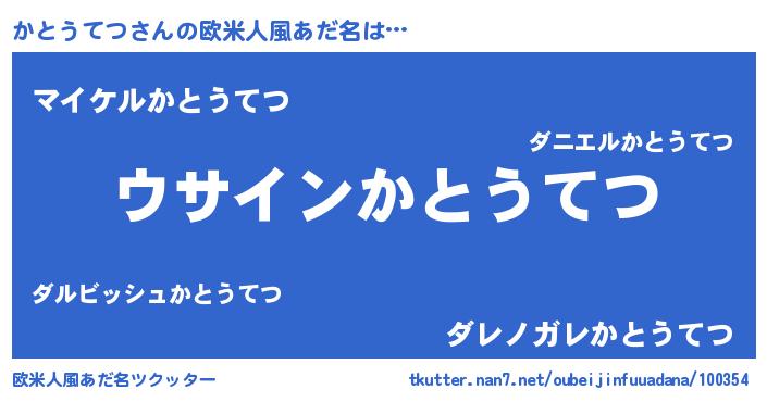 | 男性向けラノベタイトル風あだ名 | 『かとうてつの嫁は女の子じゃないと思った?』 |