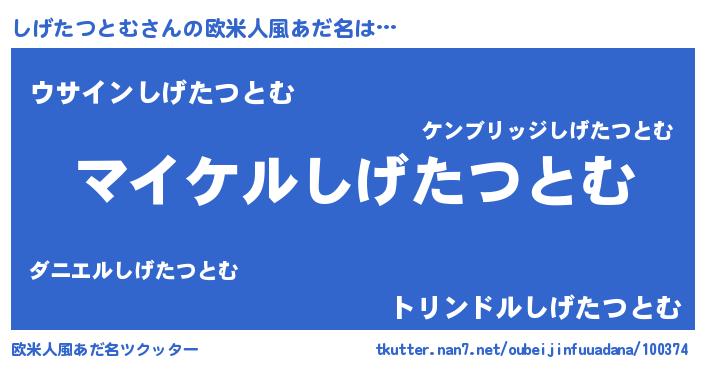 | 男性向けラノベタイトル風あだ名 | 『しげたつとむの憂鬱』 |