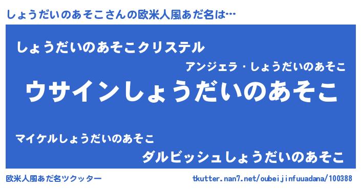 | 男性向けラノベタイトル風あだ名 | 『しょうだいのあそこの嫁は女の子じゃないと思った?』 |
