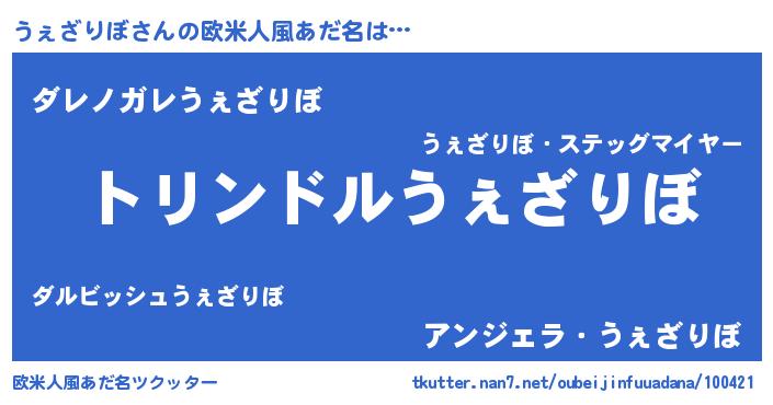 | 胡散臭い通販商品みたいなあだ名 | 『あなたにだけ特別に提供する世界で10本だけ現存している希少なブランデー…その名も「うぇざりぼ」』 |