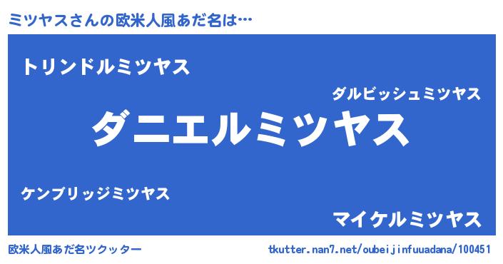 | 男性向けラノベタイトル風あだ名 | 『おまえをオタクにしてやるから、俺をミツヤスにしてくれ! 』 |