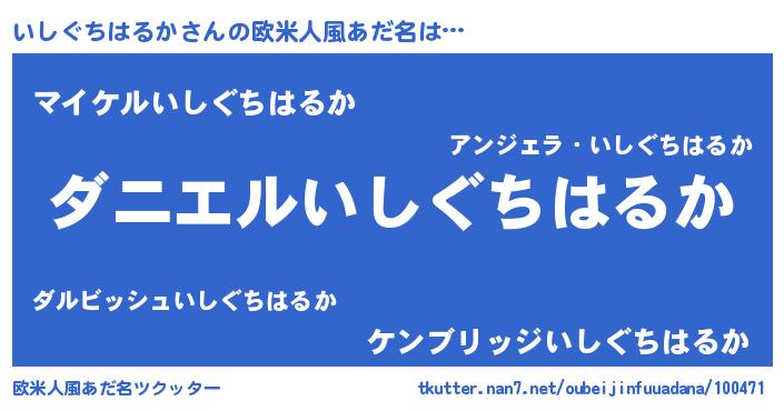 | 男性向けラノベタイトル風あだ名 | 『おまえをオタクにしてやるから、俺をいしぐちはるかにしてくれ! 』 |