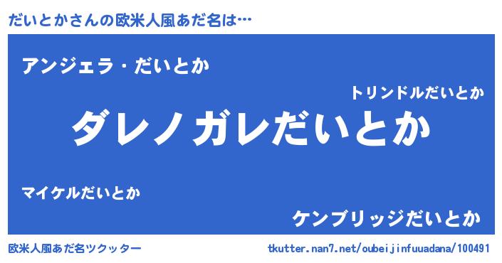 | 男性向けラノベタイトル風あだ名 | 『この素晴らしい世界にだいとかを!』 |