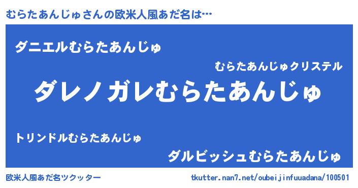 | 意味不明あだ名 | 『住所不定無職むらたあんじゅ(50歳)』 |
