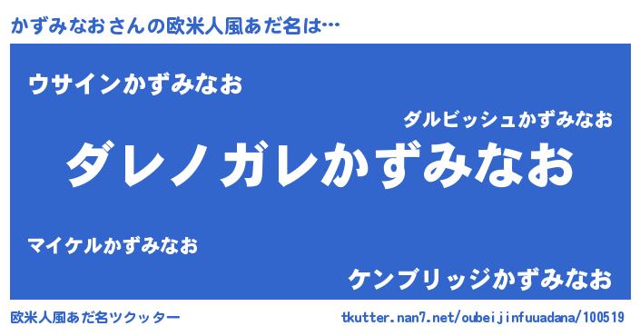 | 男性向けラノベタイトル風あだ名 | 『この素晴らしい世界にかずみなおを!』 |