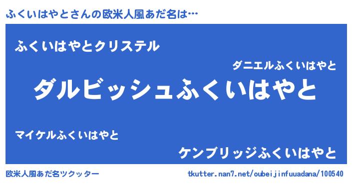 | 意味不明あだ名 | 『永久保存ふくいはやと』 |