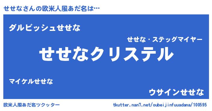 | ポケモン風あだ名 | 『セセナダネ』『ゼニセセ』 |