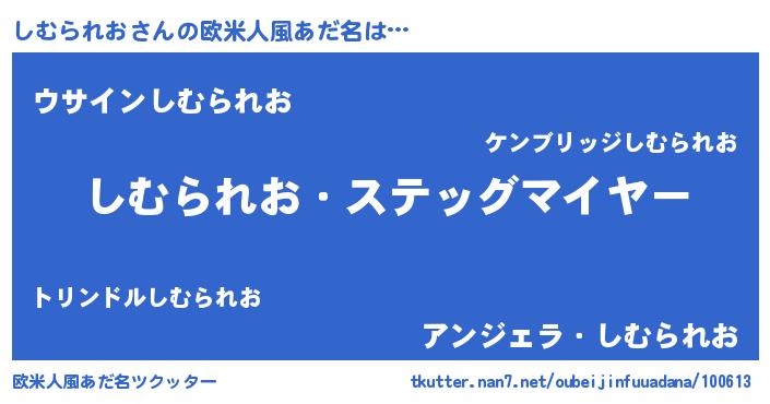 | 男性向けラノベタイトル風あだ名 | 『冴えないしむられおの育てかた』 |