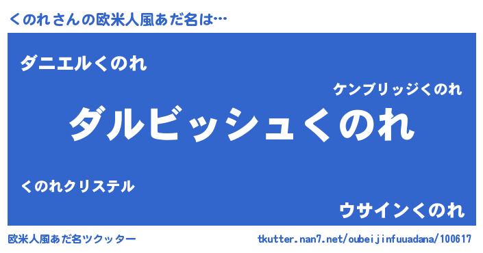 | 女子向けラノベタイトル風あだ名 | 『くのれの契約王妃』『闇のくのれ』 |