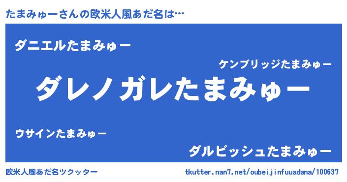 | 男性向けラノベタイトル風あだ名 | 『魔弾の王とたまみゅー』 |