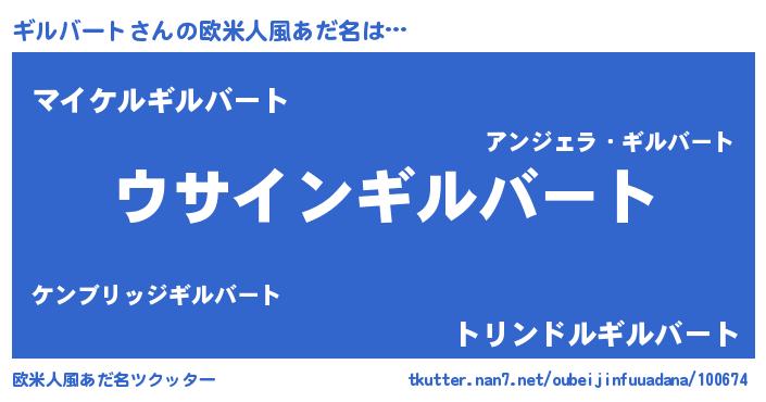 | 男性向けラノベタイトル風あだ名 | 『ギルバートの嫁は女の子じゃないと思った?』 |