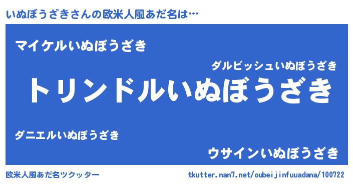 | 男性向けラノベタイトル風あだ名 | 『いぬぼうざき~年齢イコール彼女いない歴の魔法使い~』 |