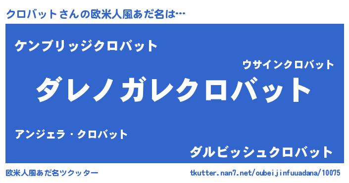 | 男性向けラノベタイトル風あだ名 | 『この素晴らしい世界にクロバットを!』 |