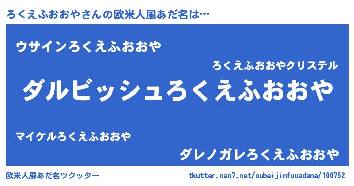 | 意味不明あだ名 | 『永久保存ろくえふおおや』 |