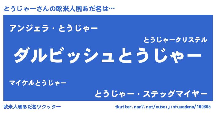 | 胡散臭い通販商品みたいなあだ名 | 『来世でも幸せになれる健康食品…その名も「とうじゃー」』 |