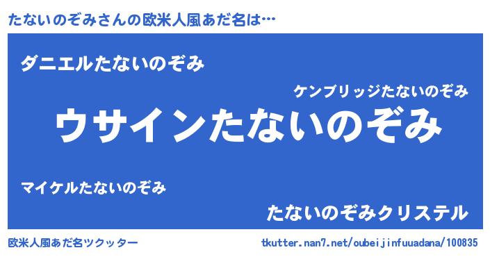 | 女子向けラノベタイトル風あだ名 | 『たないのぞみは平凡を望む』 |