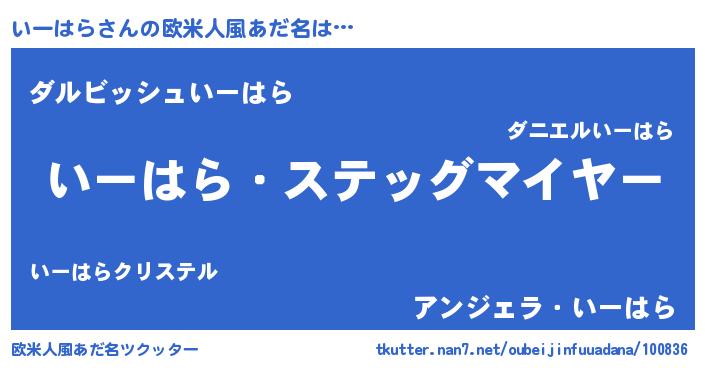 | 男性向けラノベタイトル風あだ名 | 『冴えないいーはらの育てかた』 |