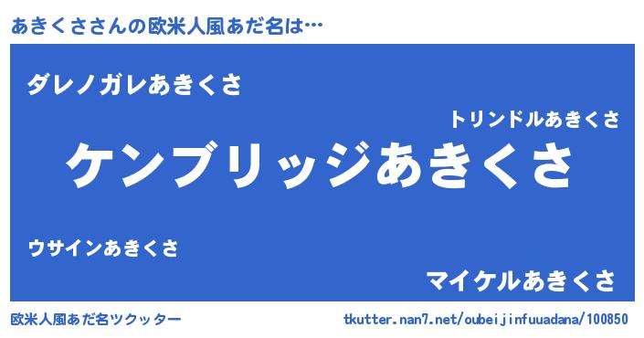 | 女子向けラノベタイトル風あだ名 | 『あきくさなんてお断りですっ。』 |