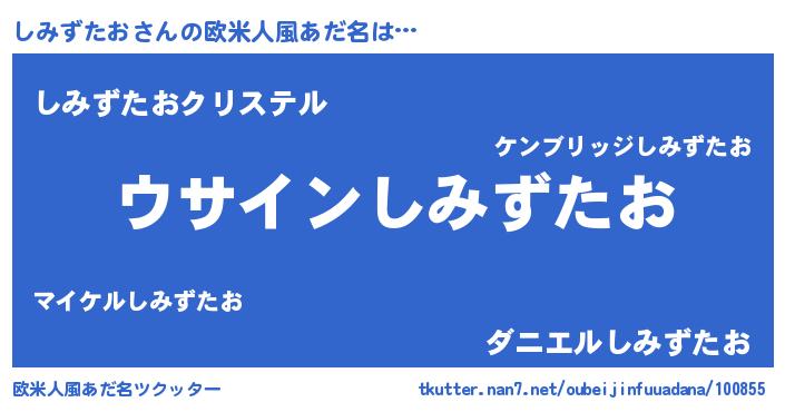| 女子向けラノベタイトル風あだ名 | 『しみずたお様がみてる』 |