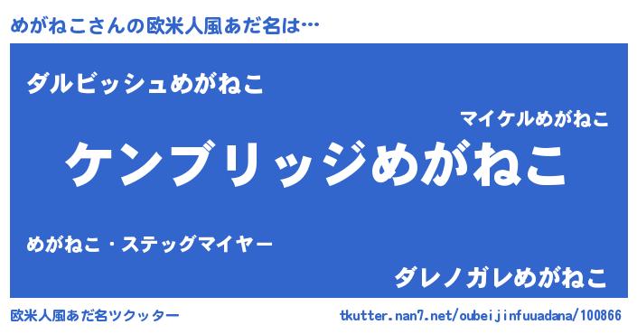 | 意味不明あだ名 | 『自称めがねこ』『永久保存めがねこ』 |