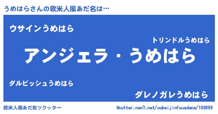 | 男性向けラノベタイトル風あだ名 | 『うめはらに滅ぼされるだけの簡単なお仕事です』 |