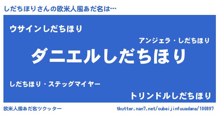 | 男性向けラノベタイトル風あだ名 | 『おまえをオタクにしてやるから、俺をしだちほりにしてくれ! 』 |