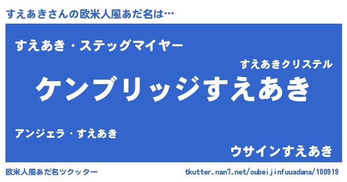 | 女子向けラノベタイトル風あだ名 | 『すえあきストレイドッグス』 |