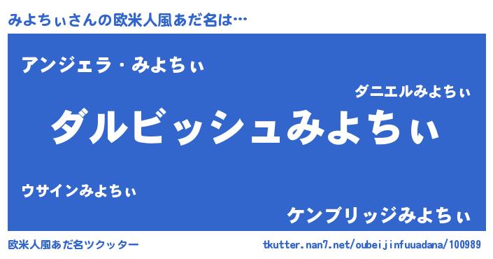 | 男性向けラノベタイトル風あだ名 | 『みよちぃという概念が存在しない退屈な世界 』 |