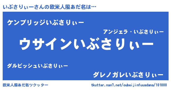 | 男性向けラノベタイトル風あだ名 | 『いぶさりぃーの嫁は女の子じゃないと思った?』 |