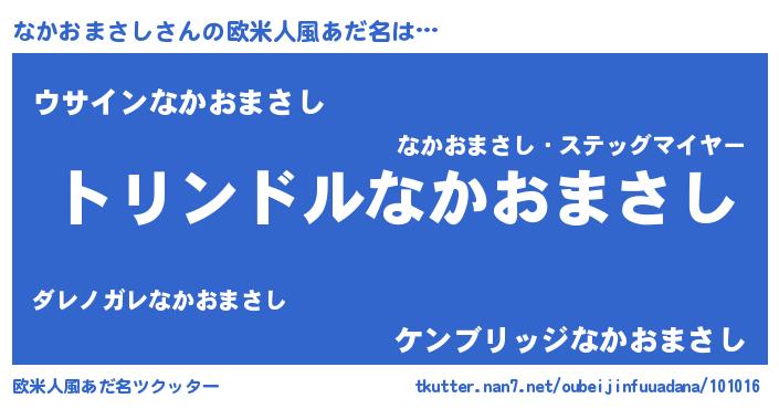 | 男性向けラノベタイトル風あだ名 | 『ナカオマサシスレイヤー』 |