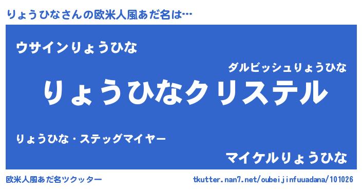 | ファンタジー風あだ名 | 『エターナルリョウヒナー』『リョフェル』 |