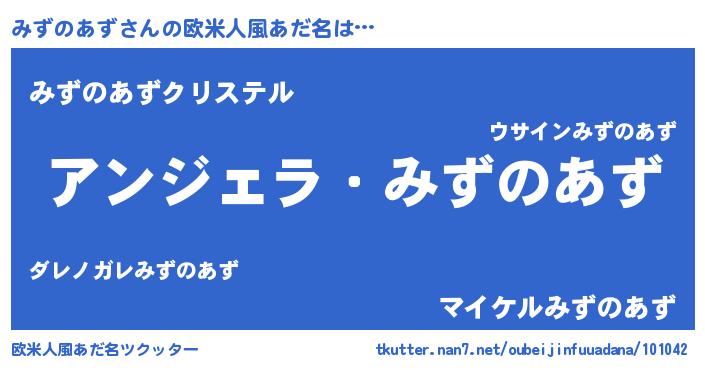 | 男性向けラノベタイトル風あだ名 | 『みずのあずに滅ぼされるだけの簡単なお仕事です』 |
