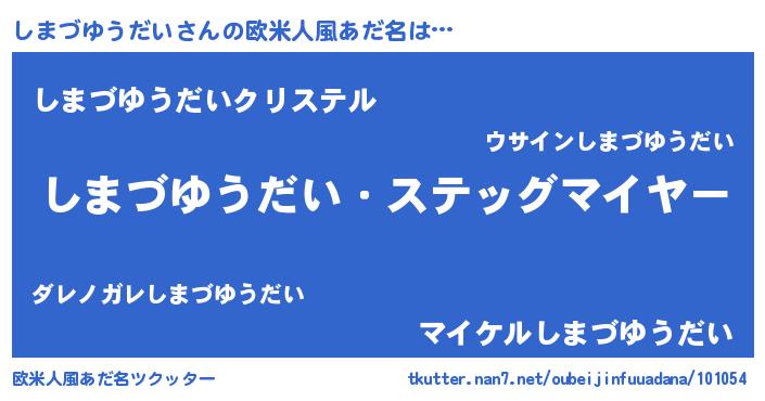 | 男性向けラノベタイトル風あだ名 | 『うちのしまづゆうだいが世界を掌握している!』 |