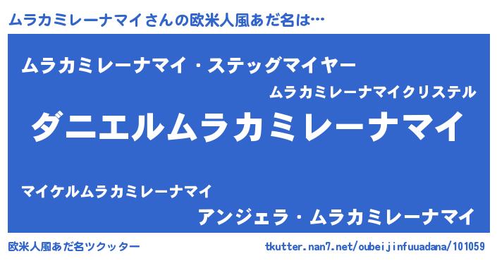 | 男性向けラノベタイトル風あだ名 | 『おまえをオタクにしてやるから、俺をムラカミレーナマイにしてくれ! 』 |