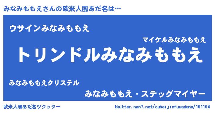 | 男性向けラノベタイトル風あだ名 | 『転生したらみなみももえだった件』 |