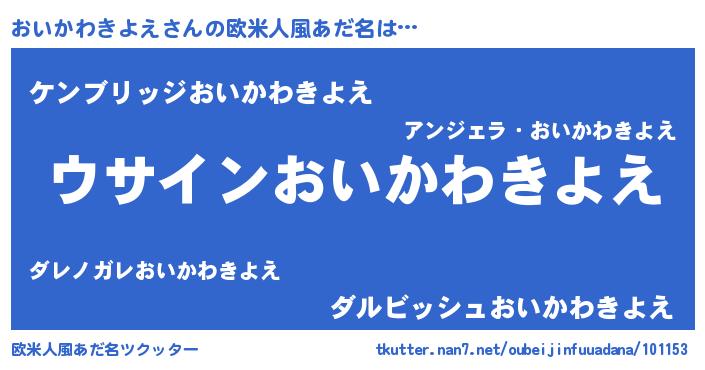 | 男性向けラノベタイトル風あだ名 | 『おいかわきよえの嫁は女の子じゃないと思った?』 |