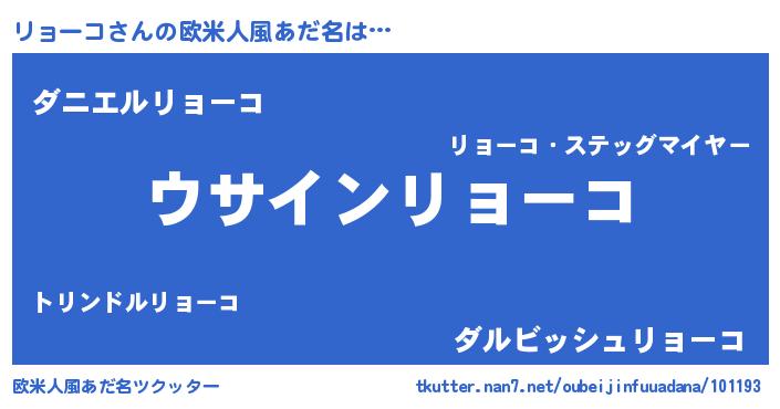 | 男性向けラノベタイトル風あだ名 | 『リョーコの嫁は女の子じゃないと思った?』 |