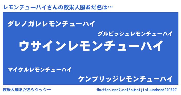 | 女子向けラノベタイトル風あだ名 | 『レモンチューハイの卵を拾いまして』 |