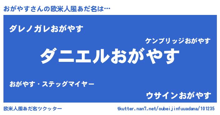 | 男性向けラノベタイトル風あだ名 | 『おまえをオタクにしてやるから、俺をおがやすにしてくれ! 』 |