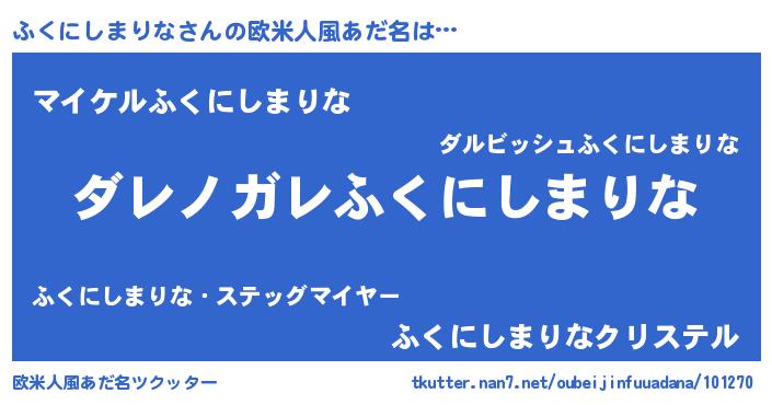 | ヘコむあだ名 | 『ふくにー』『牛乳』『ふくぷりん』 |