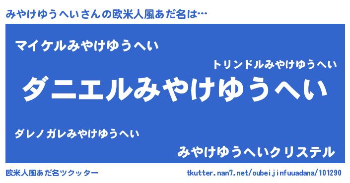 | 男性向けラノベタイトル風あだ名 | 『ノーゲーム・ノーミヤケユウヘイ』 |