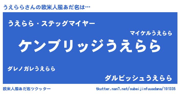 | 意味不明あだ名 | 『自称うえらら』『永久保存うえらら』 |