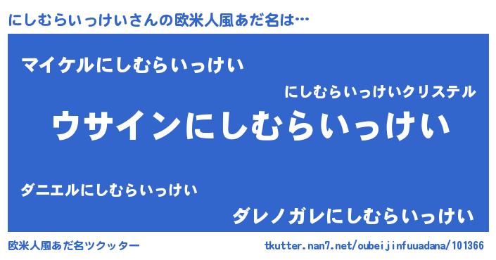 | 女子向けラノベタイトル風あだ名 | 『にしむらいっけいの卵を拾いまして』 |