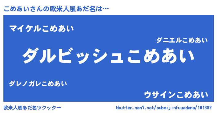 | 意味不明あだ名 | 『永久保存こめあい』『ペロリンこめあい』 |