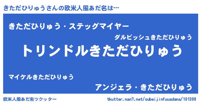 | 女子向けラノベタイトル風あだ名 | 『きただひりゅうの玉の輿計画!』 |