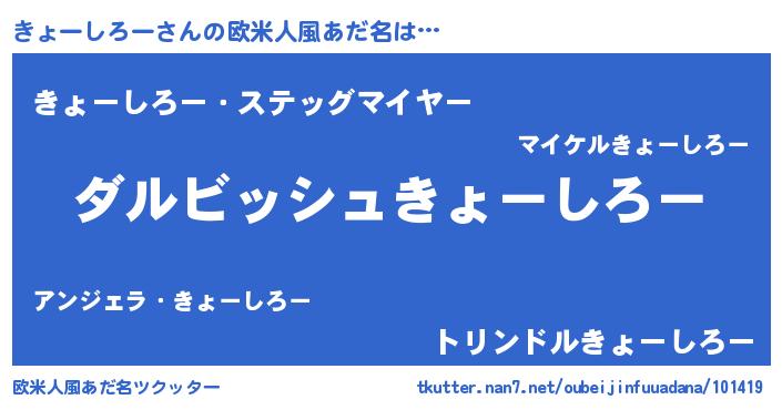| 男性向けラノベタイトル風あだ名 | 『きょーしろーという概念が存在しない退屈な世界 』 |