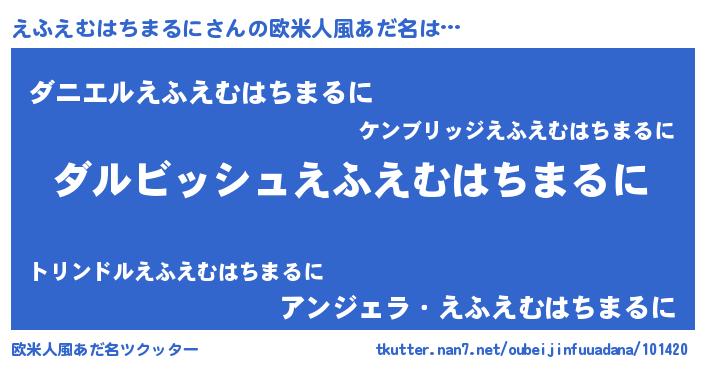 | 意味不明あだ名 | 『永久保存えふえむはちまるに』 |