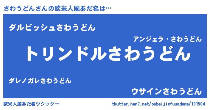 | 男性向けラノベタイトル風あだ名 | 『転生したらさわうどんだった件』 |