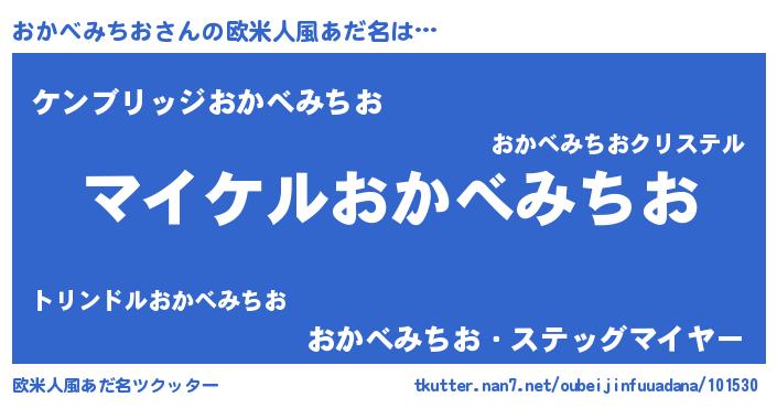 | 女子向けラノベタイトル風あだ名 | 『(仮)おかべみちおのやんごとなき事情』 |